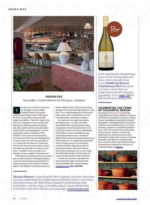 I’ll need to come back in 50 years to talk again to Sam Griffin, Creative Director of interior architectural design studio CTRL Space. By then, he says, New Zealand design might be settled in. “We don’t have a style yet. A lot of people in a lot of studios are having fun exploring what the options are, what environments and what styles work well for our demographic and our population, which is unique to New Zealand.” So for now we’re borrowing from here and there but also finding what we have of our own that we can hold on to. “I quite like that because I think that there’s a lot more room to explore before we settle on a style for our country,” says Sam. “I wouldn’t want our style to be defined, not yet, maybe in 50 years or so.”